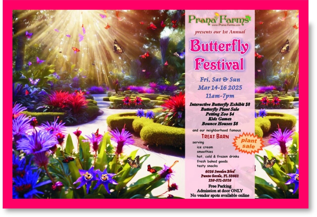 Prana Farms invites you to their 1st annual Butterfly Festival with their eye catching interactive butterfly exhibit!