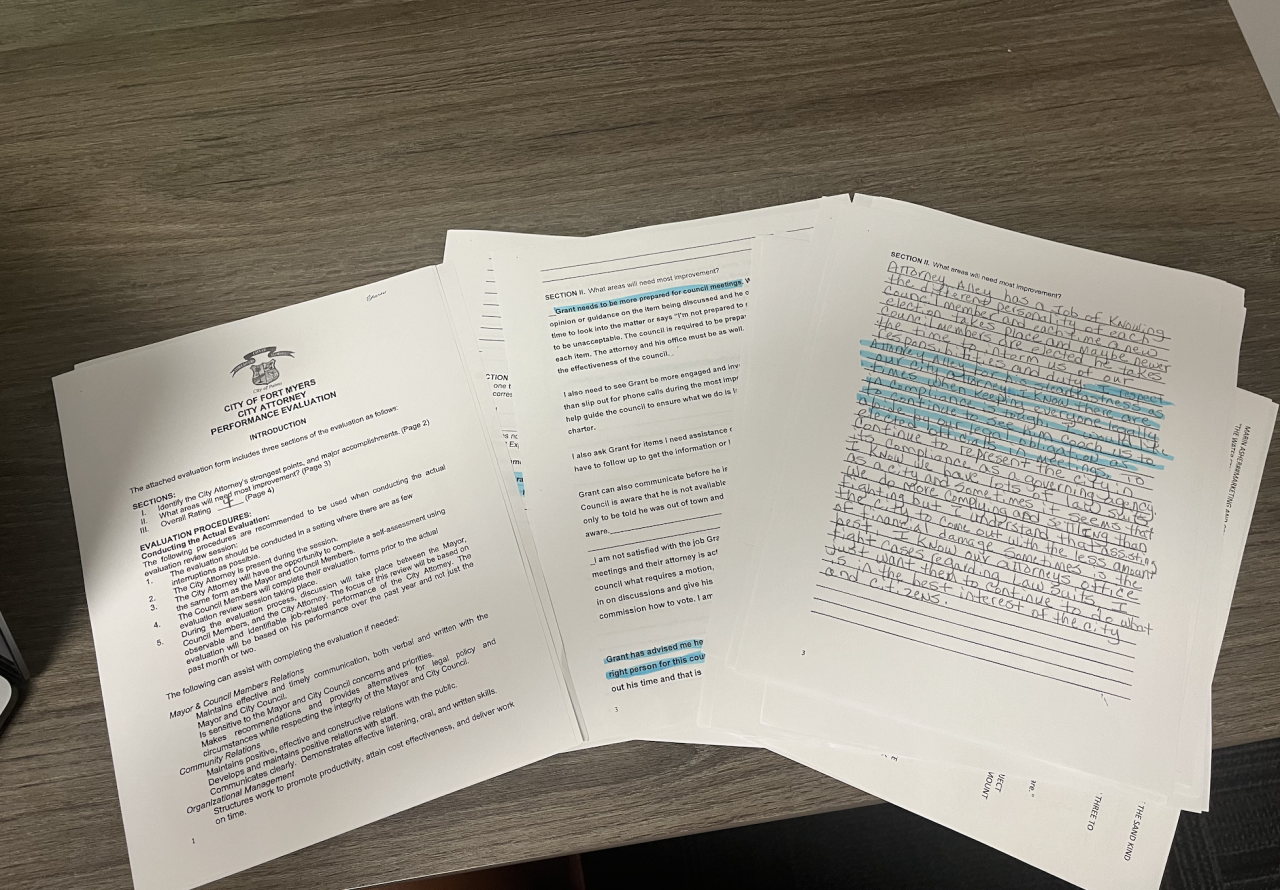 In that same 64-page annual review, some council members praised Alley's ability to keep everyone "legally in compliance." One council member said she would like him to continue to,"coach us to abide by our legal obligations as elected officials."