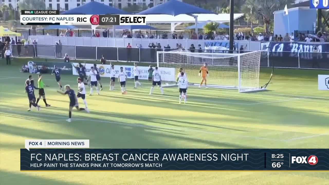 Fans are encouraged to wear pink and help “paint the stands pink” in a show of unity and strength. FC Naples will also donate a portion of the proceeds from sales of its limited-edition Breast Cancer Awareness T-shirts to the Naples Cancer Advisors, supporting programs that provide early detection, education, and patient care services across Southwest Florida.