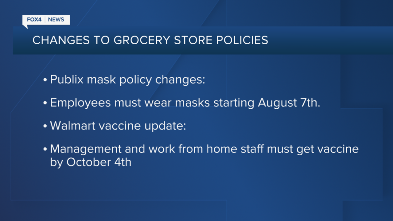 Publix is making an update to it's policies. The supermarket chain says that it's bringing back the mask mandate for company employees starting today. We also know that Walmart has told it's management staff and people working from home that they need to be vaccinated by October 4th. Employees working in Walmart locations are not required to be vaccinated.
