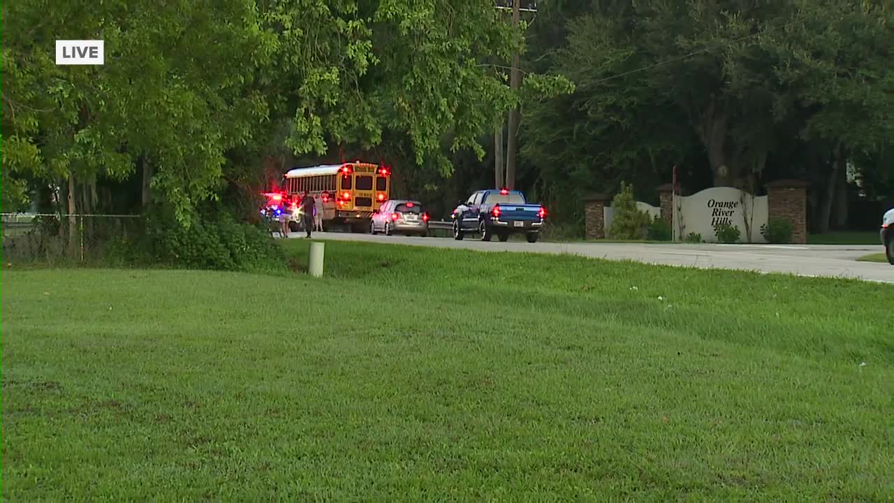 FHP is classifying the incident as a hit-and-run. The witness could only say the suspect vehicle was gray in color.