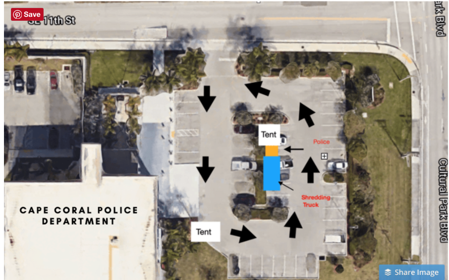 The event will be held in the front parking lot of the Cape Coral Police Department (1100 Cultural Park Blvd) between 9:00 a.m. and 12:00 p.m.