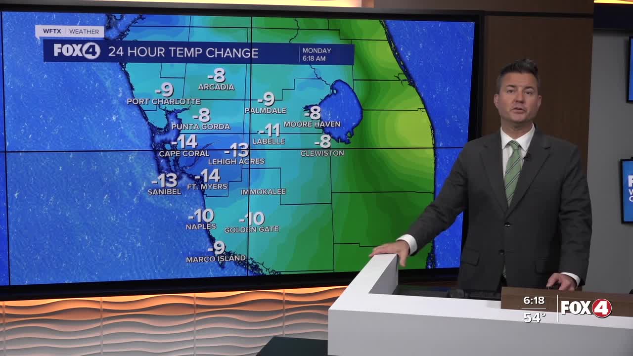 Good morning, Southwest Florida! We are waking up cooler and less humid this morning thanks to to cold front that moved through overnight. We are sitting in the to to upper 50s across much of the area. While this feels completely different to the warm stretch of weather we have been having, this is right around our average low of 54° for this time of the year. This afternoon we will see partly sunny skies with highs in the mid 70s. We are forecasting 75° and that is our average for this time of the year.