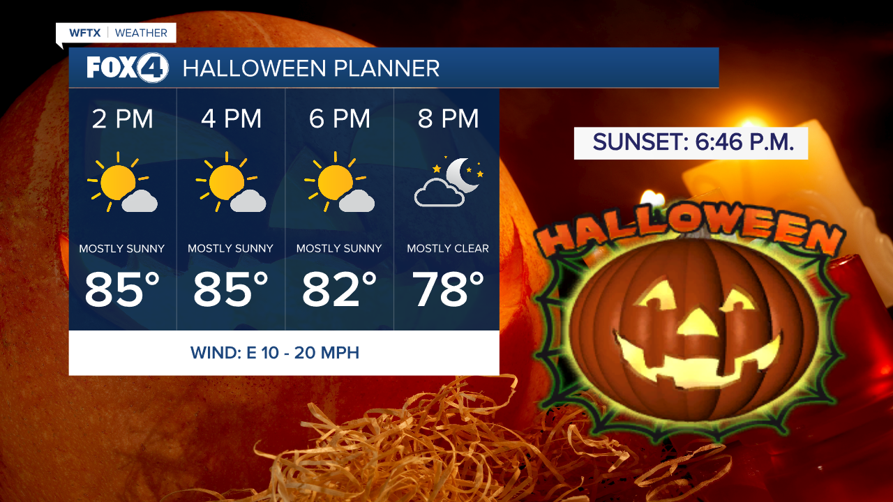 Trick-or-treaters can expect temperatures falling into the 70s with mostly clear skies.