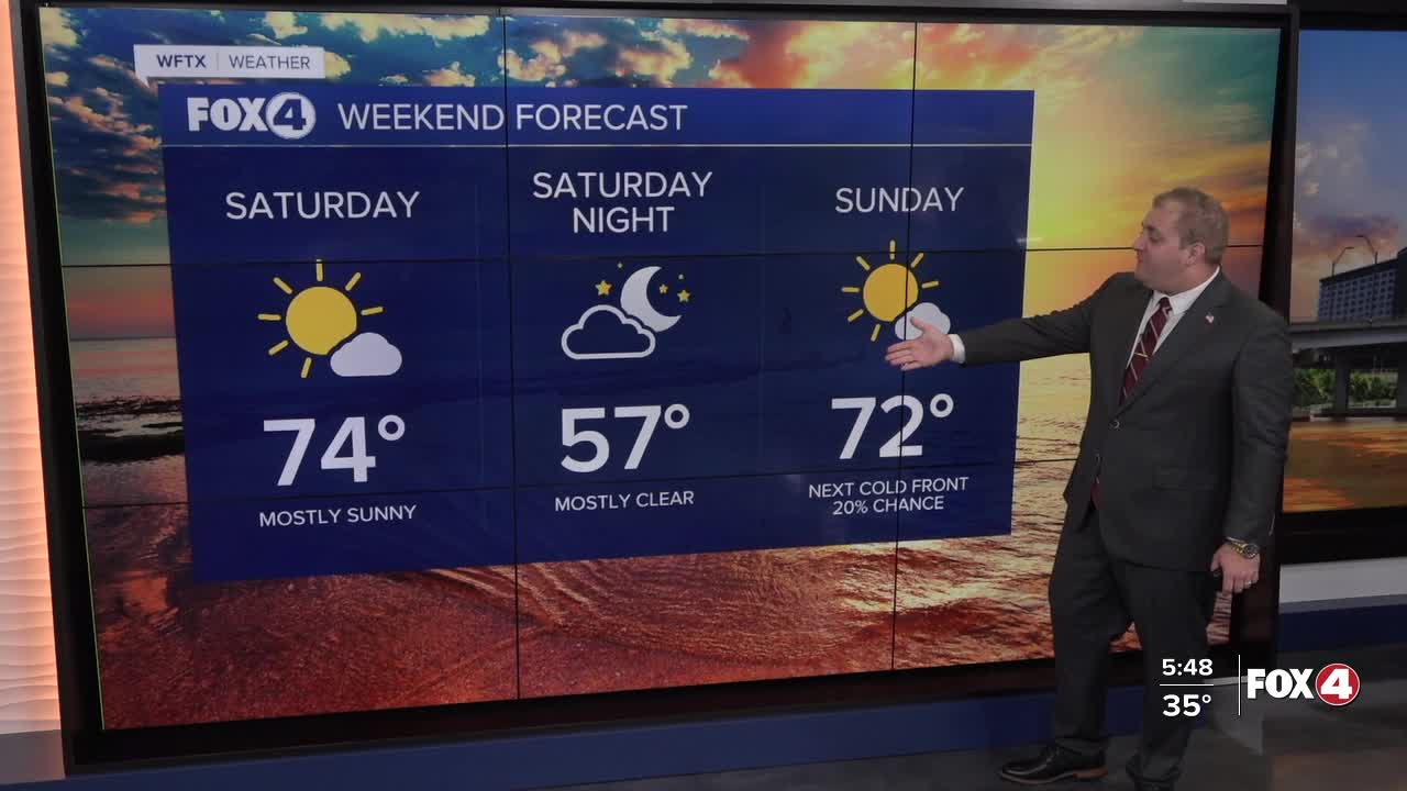 We warm up on Saturday reaching 74°, but another cold front arrives Sunday. Still Sunday will be in the low 70s ahead of the front.