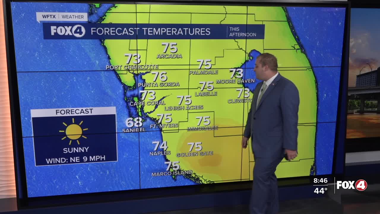 We kicked off your Sunday morning in the mid to upper 40s inland and 50s closer to the coast. High temperatures will still climb into the low and mid-70s with ample sunshine.
