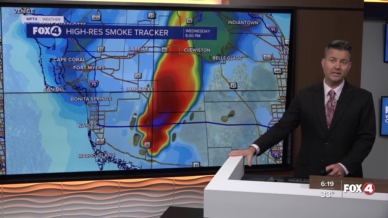 That shift in the wind will cause some issues with the smoke from the fire burning near I-75 in Collier county. So for anyone traveling through central and eastern Collier county today, please travel with caution, as the National Fire continues to burn.
