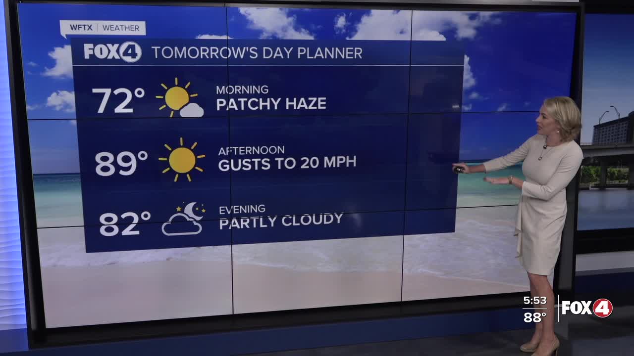 High temperatures crept into the upper 80s this afternoon, 2° above normal. Those warmer-than-average highs will persist, despite a cold front passing through SWFL tomorrow. That said, we will be enjoying lower humidity and windy conditions to finish the work week and head into the weekend.