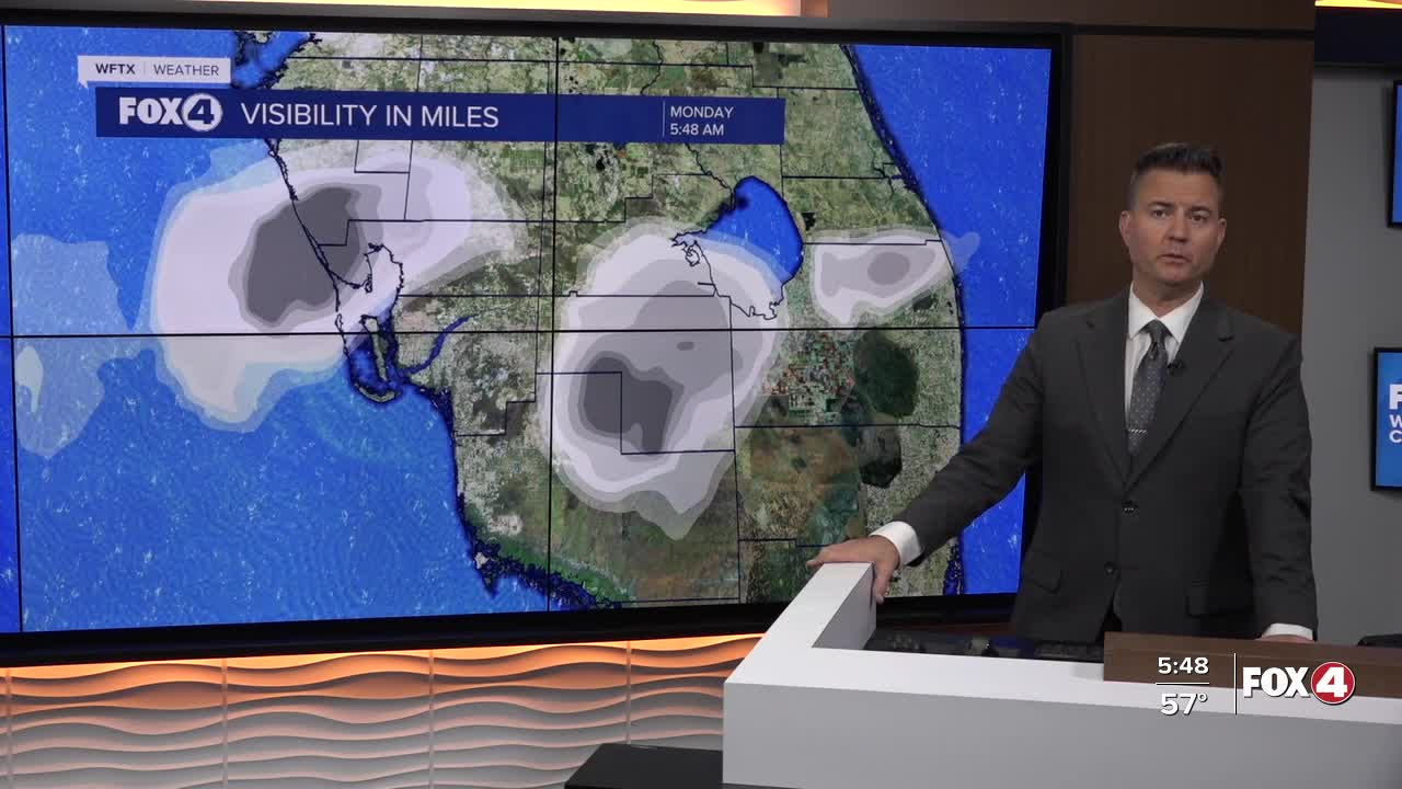 Good morning, Southwest Florida! We are waking up with a little patchy fog around the area, mostly inland in Glades, Hendry and northern Collier counties. Visibility this morning is down less than 1/2 a mile this morning in those areas. There is another are of fog in Charlotte, DeSoto and Sarasota counties. The fog will not only impact your morning commute today, but it is likely again the next couple of mornings a more humidity builds in along with calm winds overnight.