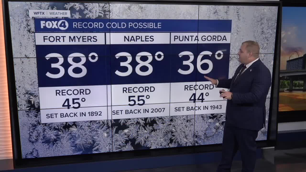 Tuesday morning will start off with the coldest lows since January with widespread 30s across SWFL. The current forecast has temperatures dropping as low as 38° in Fort Myers. To put into perspective how unusual that is. It record low for Nov 11th, is 45° in 1892, with the normal low for the date of 63°. Then you had in the feels like temperatures, and it will feel like 20s and 30s.