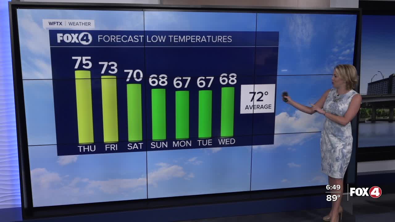 Once the front moves through early Saturday, you'll begin to feel drier air filter into SWFL, leading to lower humidity and morning lows in the 60s, the coolest since May!