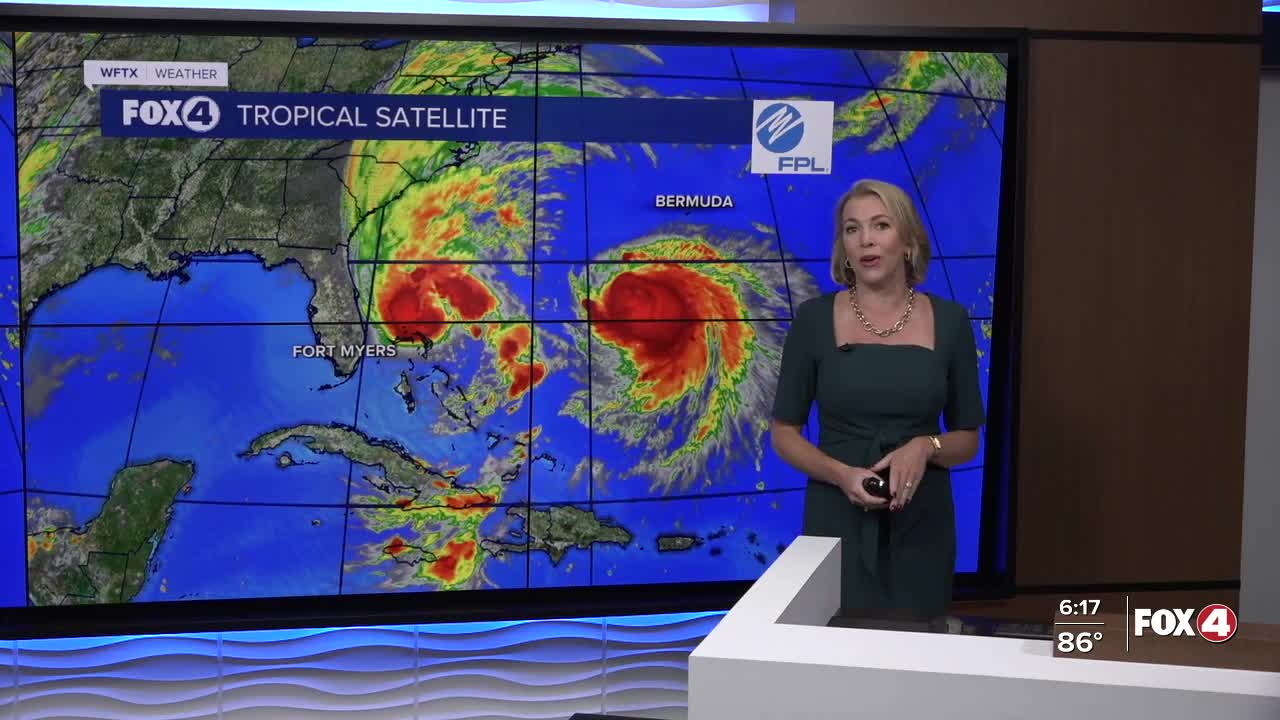 As Imelda runs parallel to Florida's east coast and pulls northeastward, drier air will filter into SWFL, dropping rain chances to 10% tomorrow.