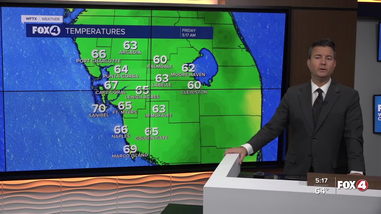 Good morning, Southwest Florida! We are waking up in the mid to upper 60s this morning, which is 5-6° warmer than yesterday and above our average of 59° for this time of the year. This afternoon we will see mostly sunny skies with our highs climbing back in the low to mid 80s with a breeze out of the south which will gusts in the mid teens.