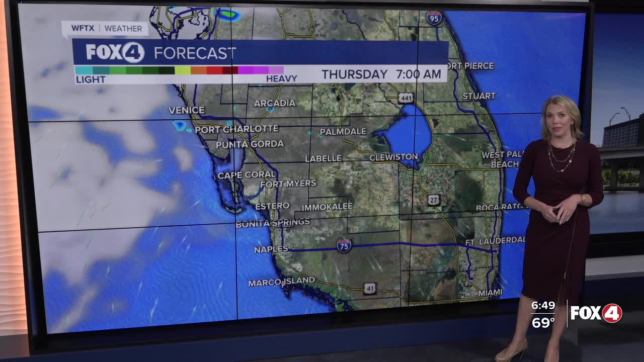 Partly cloudy skies are expected with southwesterly winds around 10 mph. This will keep our coastal communities a little cooler, closer to 70°, while the rest of SWFL climbs into the mid and upper 70s. Overall, it'll be a beautiful day for outdoor plans.
