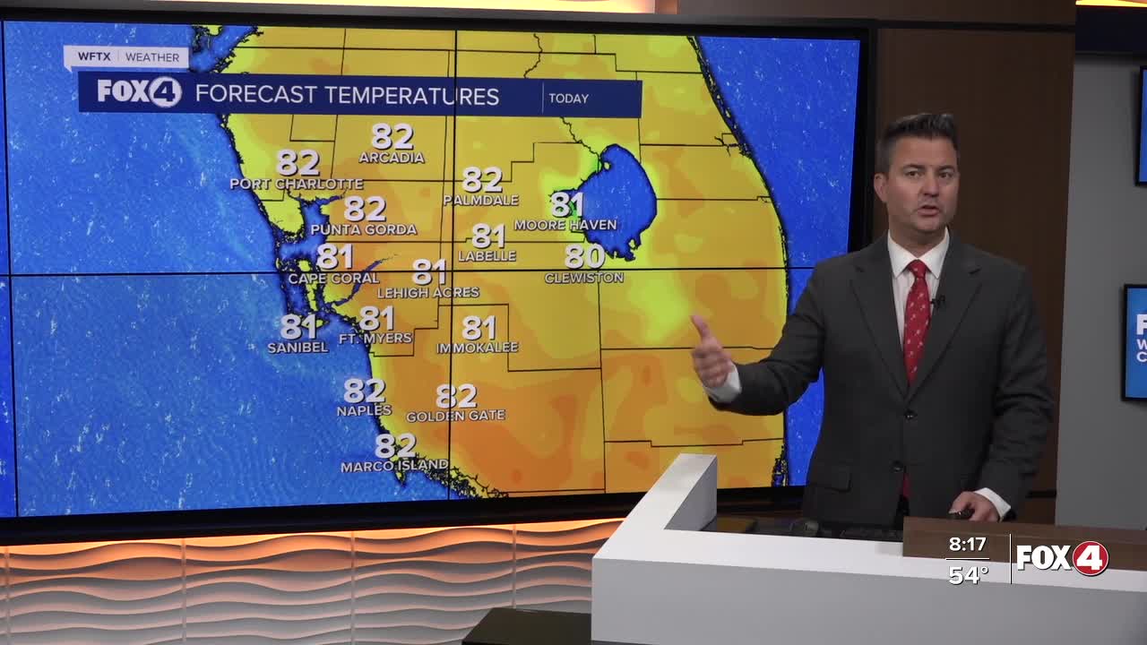 The temperatures will continue to warm tomorrow with highs in the low 80s. We are forecasting 82° on Sunday.