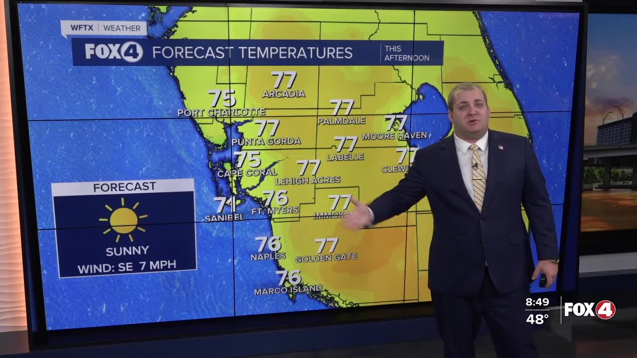 We'll warm up overall on Saturday reaching the mid to upper 70s with light southerly winds and lots of sunshine. This is the warm surge ahead of yet another cold front.