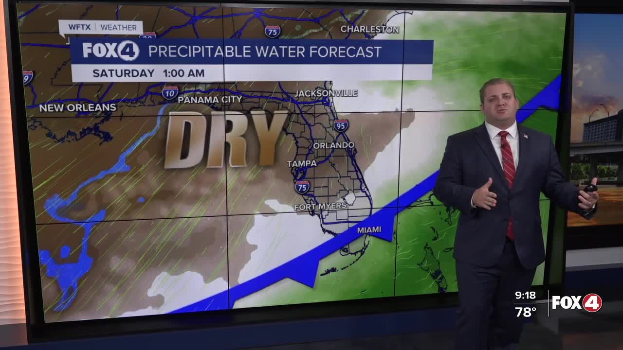 A cold front moves through SWFL late Friday, early Saturday, ushering in lower humidity and lower rain chances. Overall the weekend is expected to feel very much like fall, by SWFL standards!