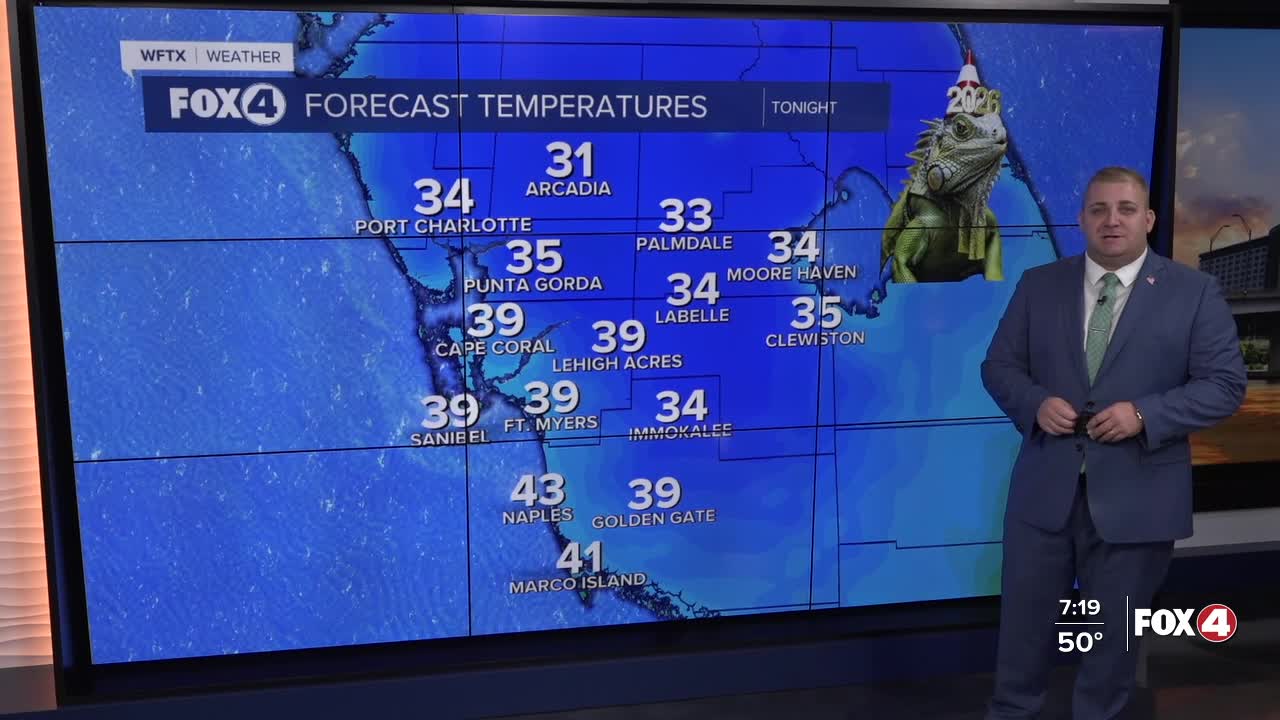 Temperatures will stay cool through New Year's Eve into New Year's Day. By Thursday afternoon, high temperatures return to the lower 70s with mostly sunny skies.